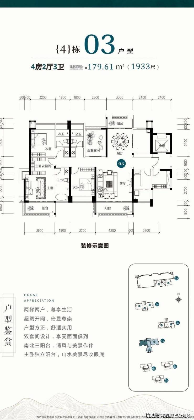 ✅明亮三卫四阳台,藏风纳景之余,起居更方便