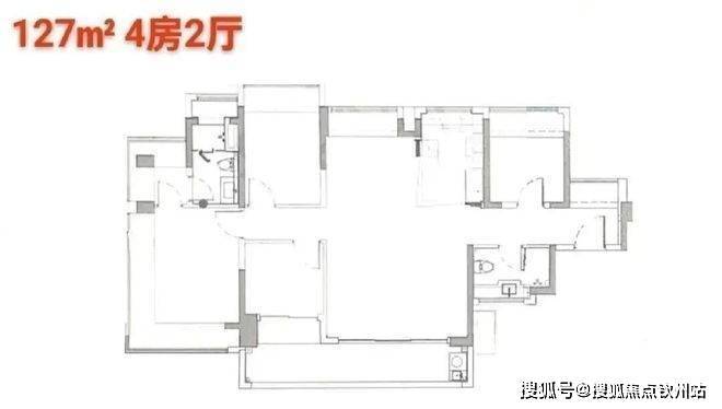 从曝光的户型图来看,全屋都做上了飘窗,布局和市面上优秀的新规产品差不多,亮点在于烟道外置,阳台部分空间可改造,使用率又有所提升。