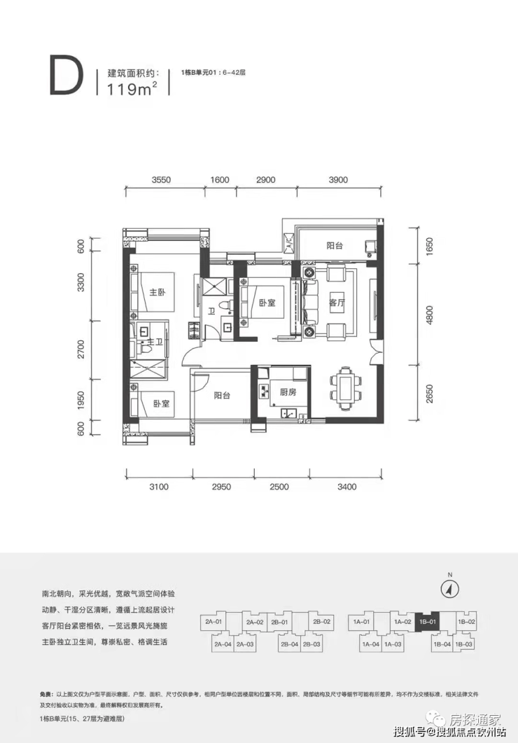 (1)小户型(111-119㎡):东南/南朝向,部分南北通透,客厅或主卧可看 大南山 山景/ 深圳湾 海景;