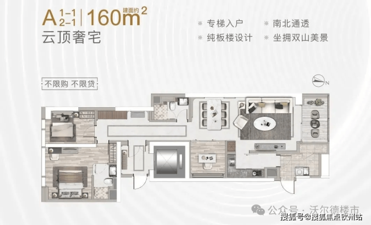 A座:建筑面积约160-220㎡2-3房(南北通透,专梯入户)