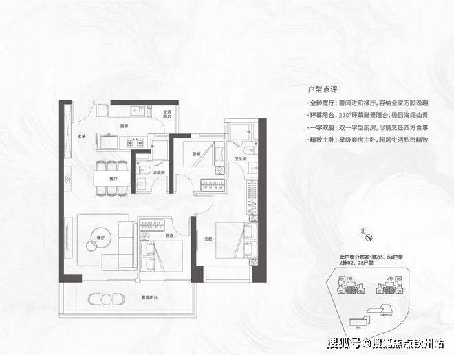 【124㎡的3+1房2厅2卫】1栋02/2栋04户型,电梯入户送独立公区,设计的是竖厅格局,动静分区,主卧套间设计,还有一个多功能间可以做书房,U型厨房,公卫三段式分离,得房率:72.07%(不含赠送)西南朝向;