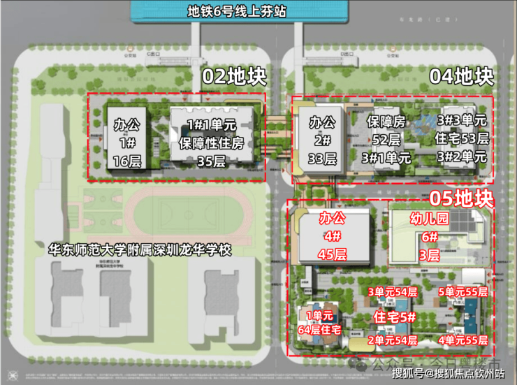 05地块,3栋54-64层超高层住宅,1栋45层写字楼,1栋12班制幼儿园。
