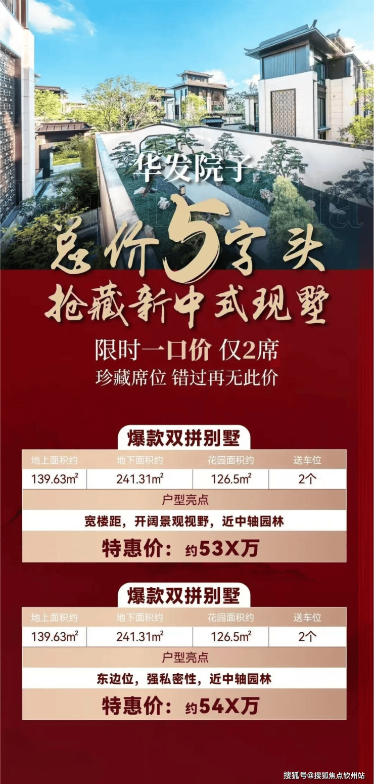 (1)双拼别墅地上面积约140㎡,总面积380㎡爆款双拼,折后599万起(政策红利价,清盘倒计时!)
