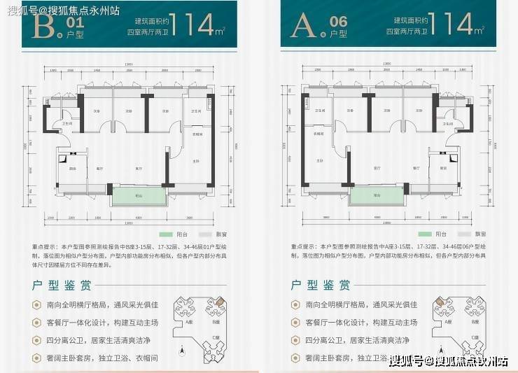 特点:南北通透,主卧独立卫浴 + 衣帽间;双阳台设计(客厅连通景观阳台,厨房配备生活阳台);餐客一体化,空间开阔;部分户型西南朝向,采光充足。