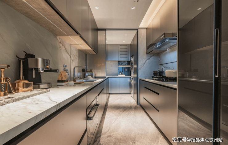 点睛一笔的地方,还在于西餐岛台的处理——刻意地与中厨拉开距离,这种程度的定制,就是为了给在厨房忙碌的人创造更愉悦的情绪场,让厨房也可以承载家庭社交。
