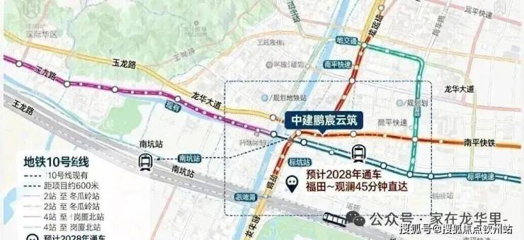 项目距离地铁10号线南坑站约600米,2站达福田冬瓜岭,4站到岗厦北。规划中的22号线横岭站约700米,预计2028年通车后可实现福田⇌观澜45分钟直达。