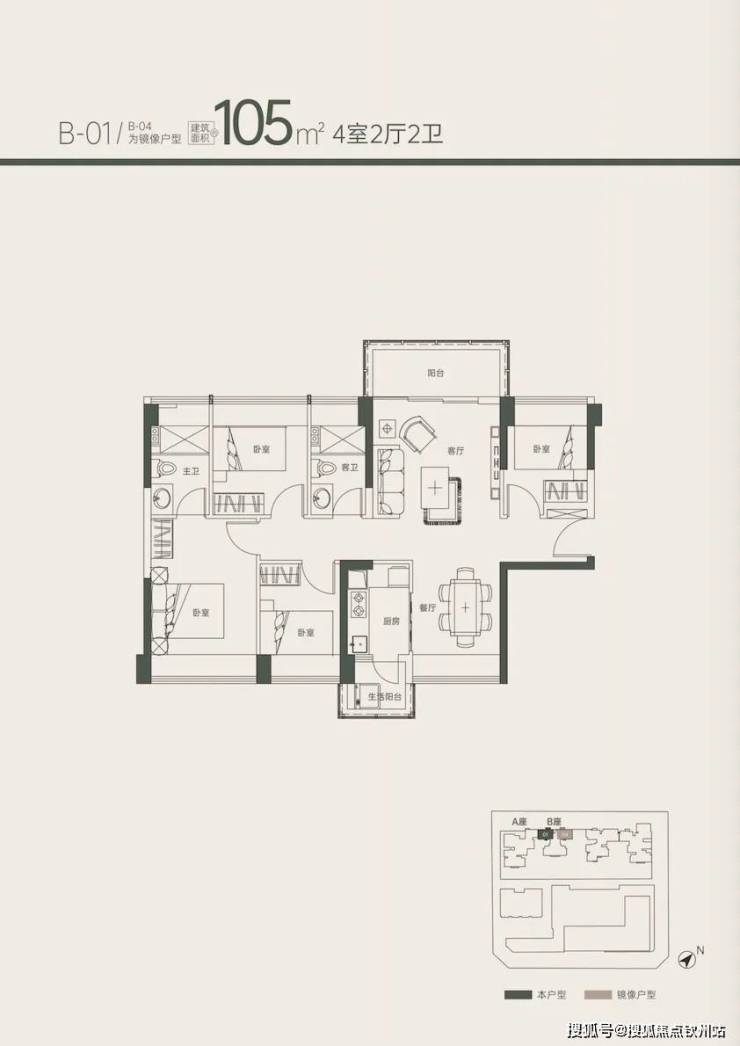 105㎡4房2卫 58套