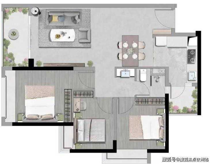 86-88㎡三房:优惠单价3.7-4.6万/㎡,优惠总价320-405万;