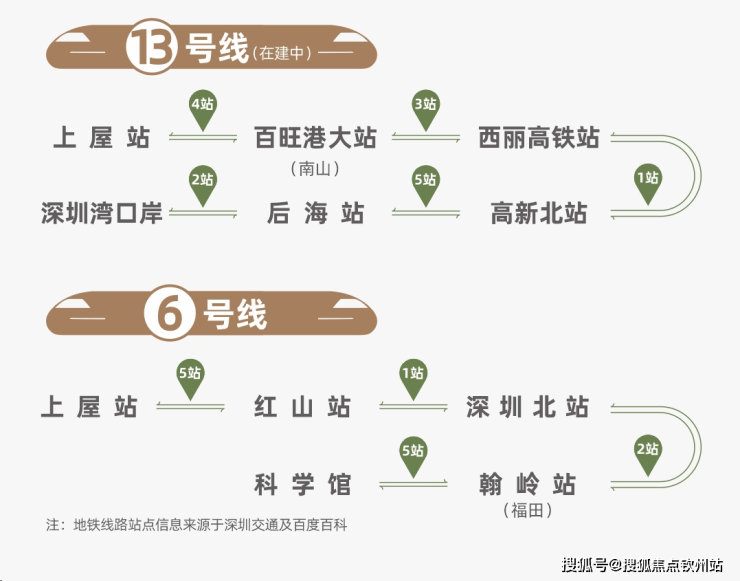 项目约直线距离400米抵达6号线、13号线(在建中)上屋站,6号线8站福田(翰岭站),13号线(建设中)4站南山、8站科技园(高新北站)。