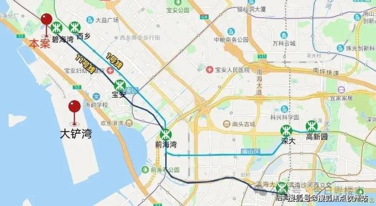 项目与地铁11号线碧海湾站无缝衔接,距离地铁1号线西乡站约700米,交通便利,是占据前海核心位置双地铁的优势资源。