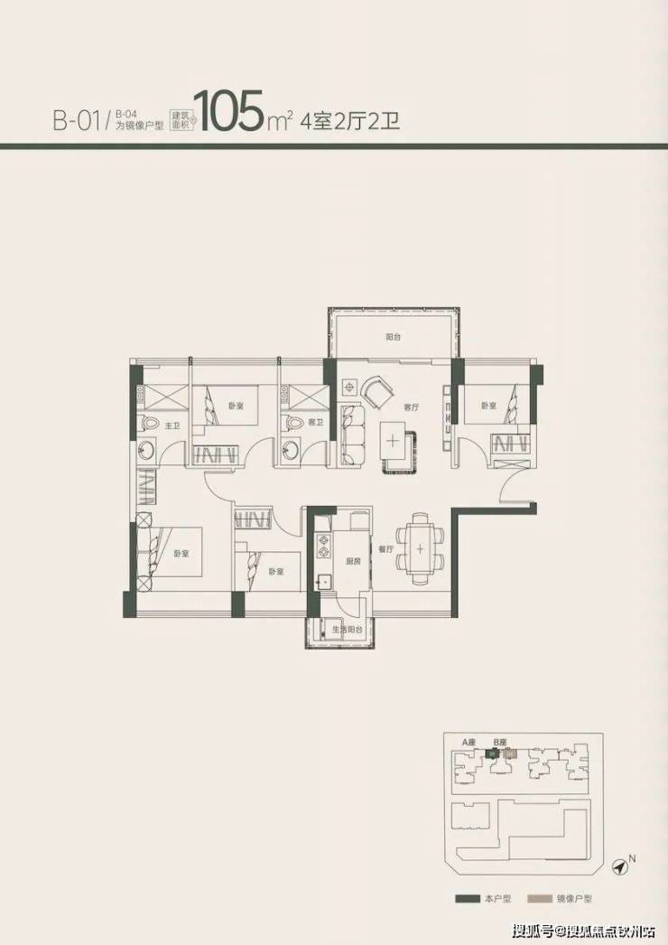 105㎡4房2卫 58套