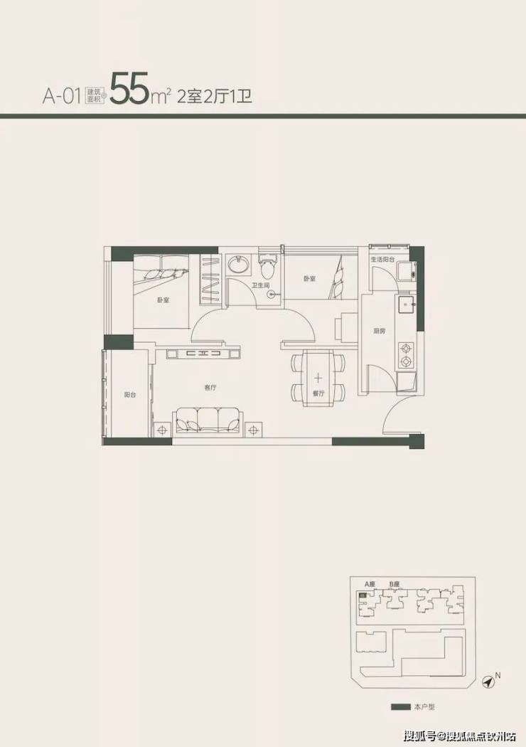 55㎡2房1卫 145套