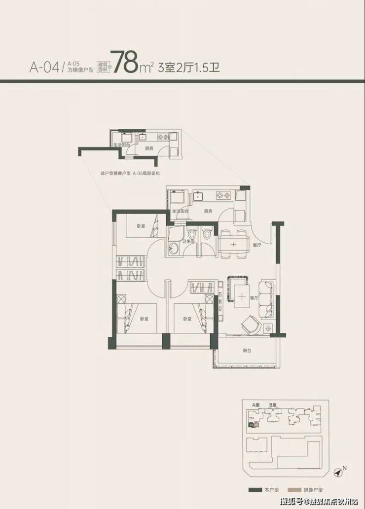 88㎡3房2卫 58套