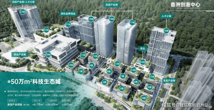 香洲创港中心以约50万㎡的超级体量,构建起集稀缺独栋、研发中心、全适配孵化器及生活配套于一体的产业矩阵。
