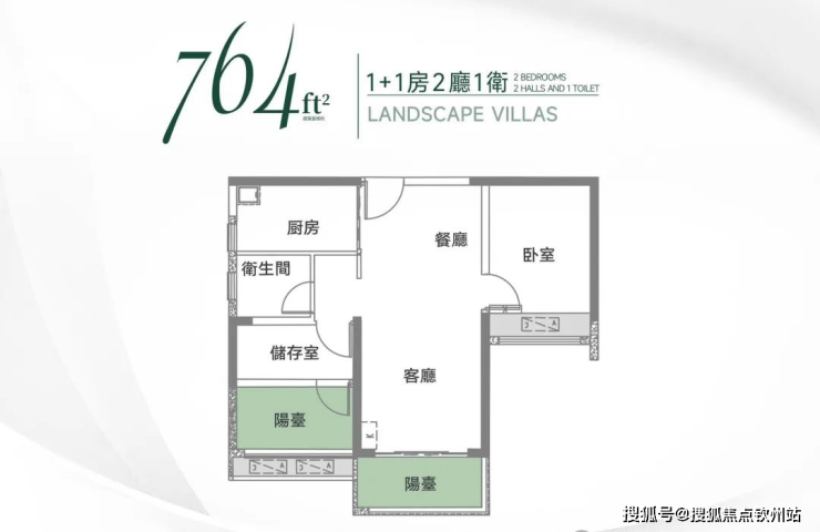 建面約71㎡(764ft²) 1➕1房2廳1衛