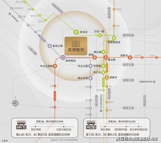 15号线(建设中)同乐关站(直线约1.5km),2站到西丽高铁站,贯穿前海、后海、南山、宝安等重要片区,环经济发展核心区域。