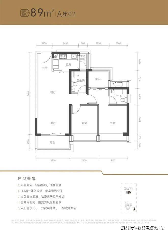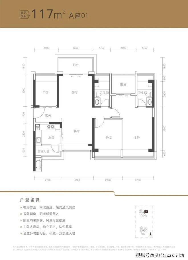 全明户型;客厅带飘窗;三分离卫浴;无过道零空间浪费