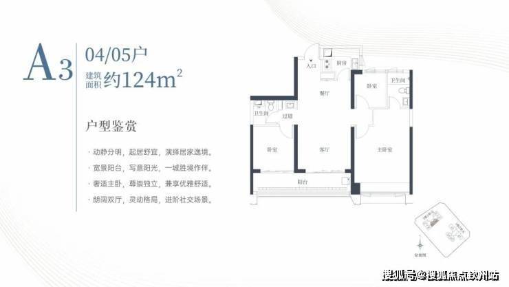 1栋一单元A3户型:面积约为124㎡