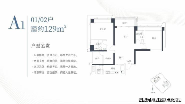1栋一单元A1、A2户型:面积约为129㎡