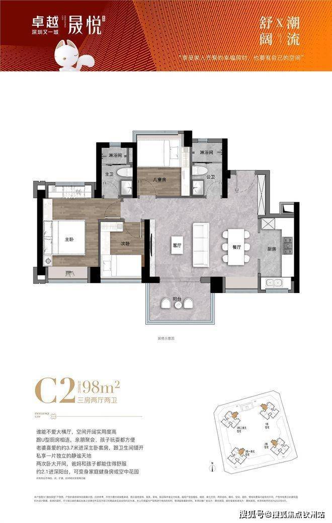 户型信息:主力户型为建面约 68-98㎡的二至三房,