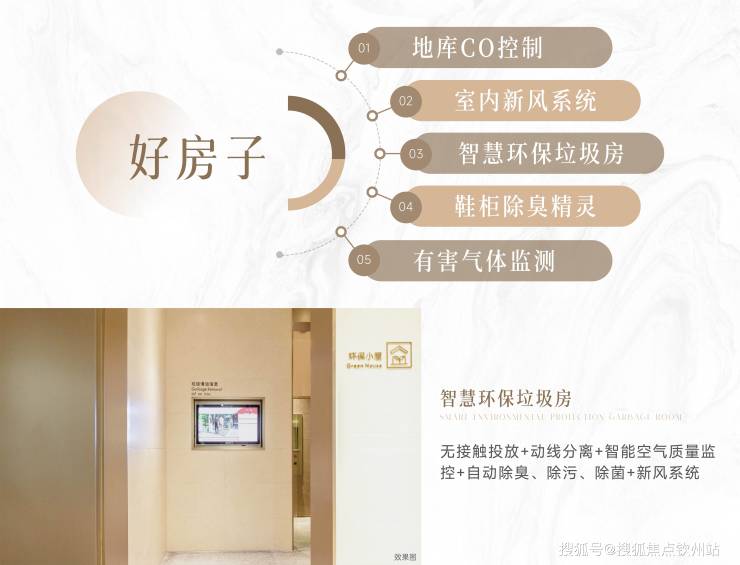 新风系统、智慧垃圾房等配置,从户内到小区,全方位净化监测+清新除菌+绿色投放,无忧呼吸。