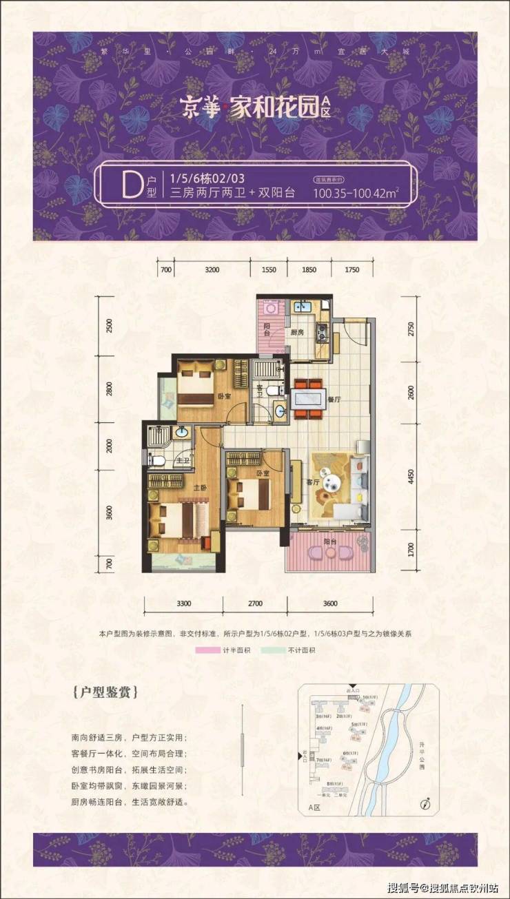 (2)100-103㎡三室两厅两卫:包含3+1房户型,空间布局合理,适合改善型家庭。