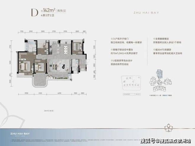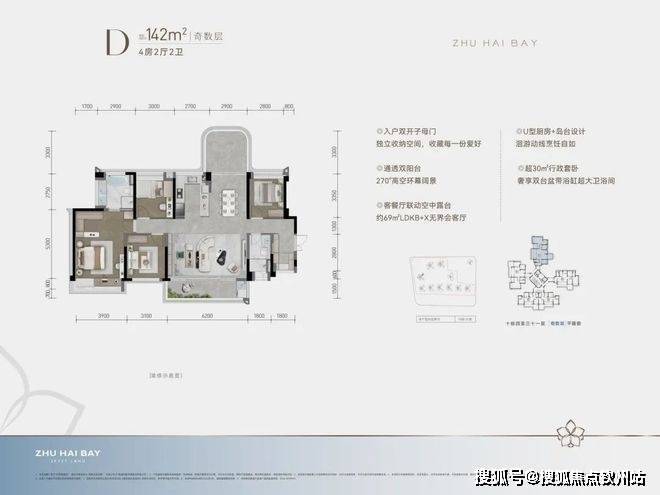 珠海首个四化新型住宅作品,超大赠送面积,实得率超100%!以创新设计打破常规,同等面积多一间房;百变全景飘窗,观景与功能性自由切换,高附加值赠送,打造N种生活场景;标配约3×3米无人机停机坪,与阳台组合成18~30㎡环幕山海观景台,让家成为风景的容器。