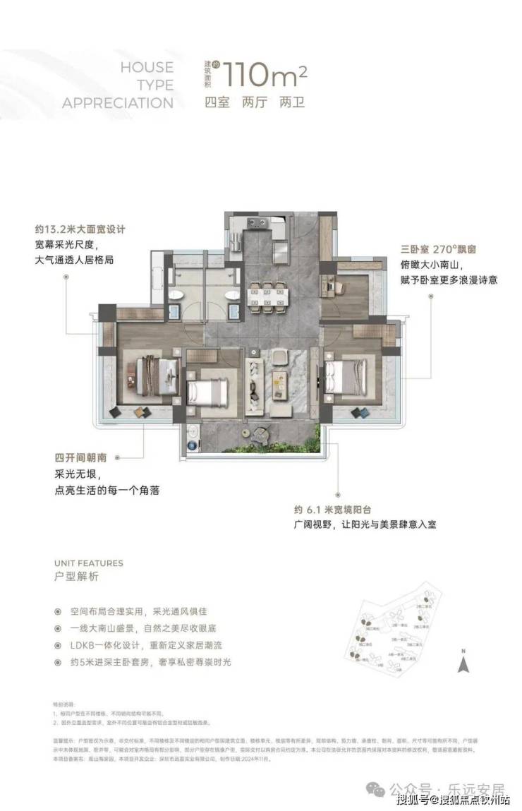 最值得注意的是,项目容积率仅约2.65,放眼目前深圳核心区的在售新盘也少很少见。项目共870套住宅,涵盖建面约95㎡3房、约110-115㎡4房以及约138㎡4房。