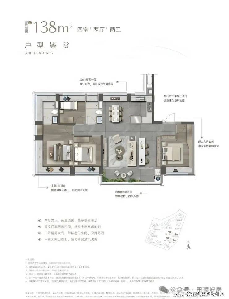 竖厅南北通透格局,专梯入户,客厅6.1米开间,LDKB一体化,全屋飘窗,4个卧室分别做到了3.9米/3.25米/2.9米/2.8米的宽度,主卧加1个次卧270°全景飘窗,客厅出6.1米长的大阳台,U型厨房,得房率约95-97%(包含赠送),阳台主朝西南向。138平米户型分布在3栋1单元、3栋2单元、4栋1单元、4栋2单,4个单元纯大户型。