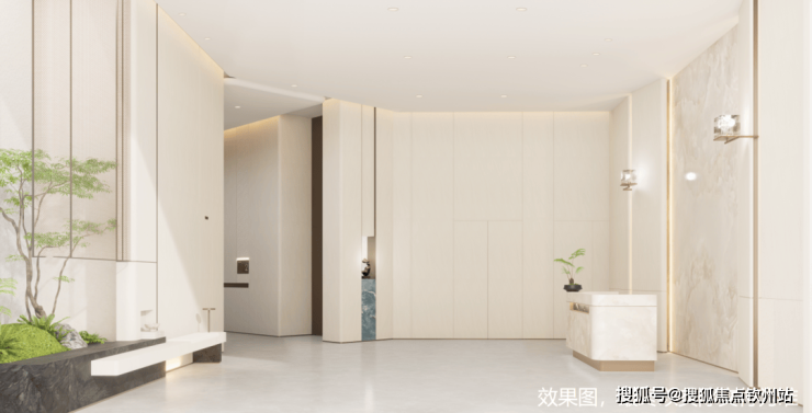 来到入户大堂,米黄石材+玉石打造的背景墙,温润雅致,低调而不失格调。