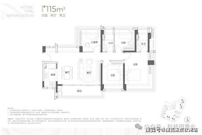 建面约115㎡4房2卫
