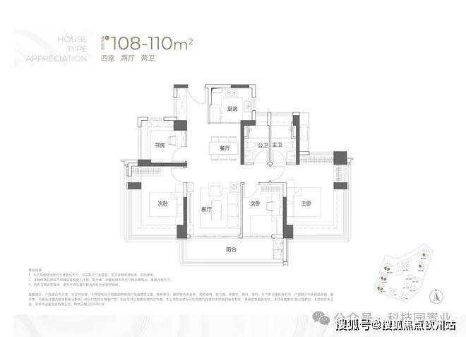 建面约108-110㎡4房2卫