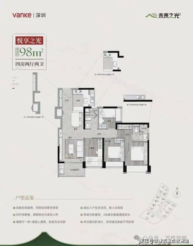 3️⃣ 稀缺产品:80㎡做三房两卫(得房率90%),98㎡四房680万起,113㎡板式洋房仅剩10套!低密2.91容积率,6山2水环绕,推窗见绿。