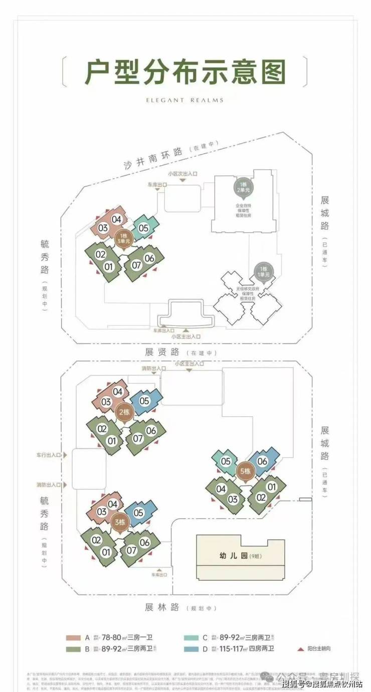 二期共由6栋总高26-31层高的住宅组成,其中1栋1单元公租房26F,1栋2单元自持租赁30F,1栋3单元/2栋住宅31F,3栋/5栋住宅32F,4栋是1所9班制幼儿园。