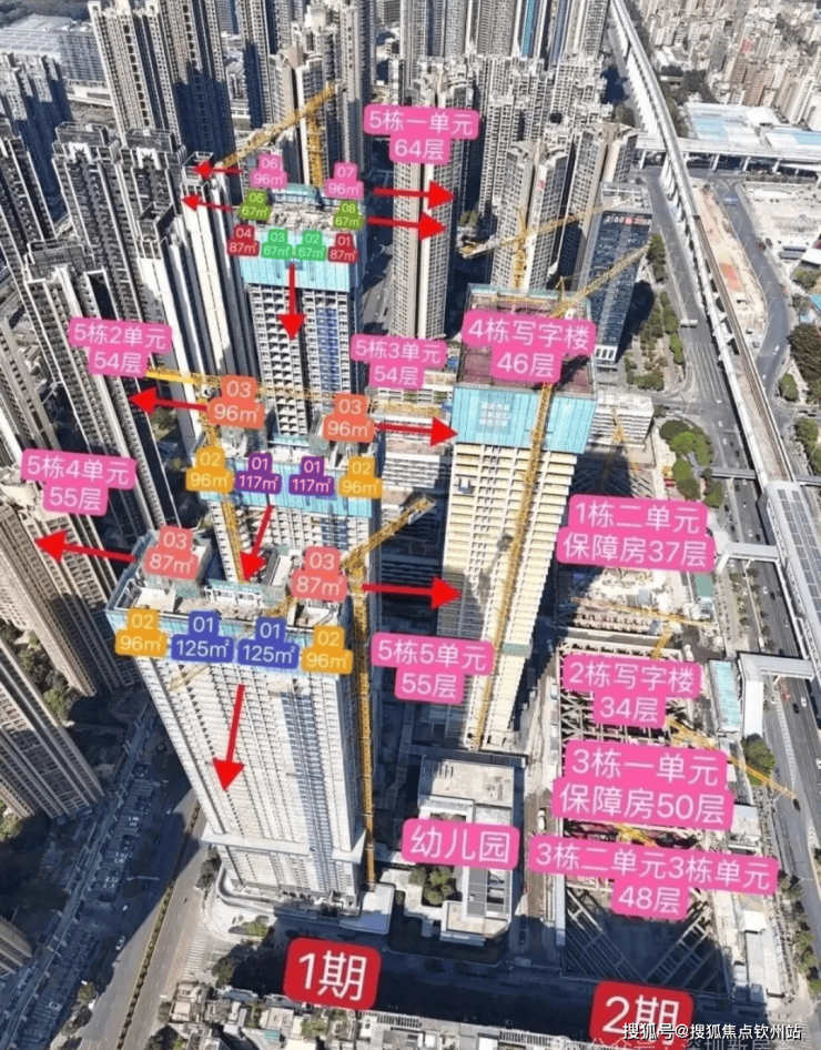 塘城壹号,总占地面积约3.5万㎡,总建筑面积约55万㎡,容积率11.4,共由4栋54-64层的超高层住宅+2栋保障性住房+3栋办公楼组成,另外配建1所12班幼儿园,其中可售的商品房有3栋1/2单元,5栋1单元64F,5栋2/3单元54F,5栋4/5单元55F。