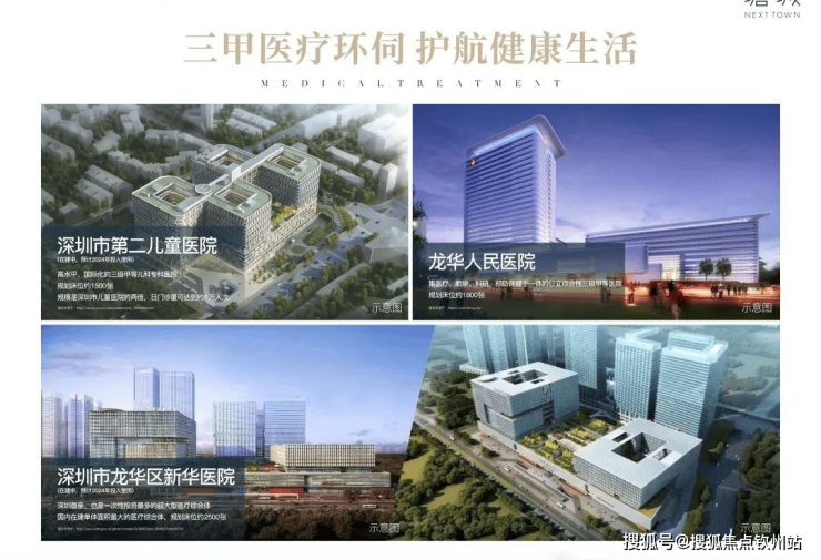 集萃深圳市新华医院(在建中)、龙华人民医院、深圳市第二儿童医院(在建中)、广州医科大附属医院(规划中)等市属公立三甲医院高标准医疗服务体系,护航健康生活。