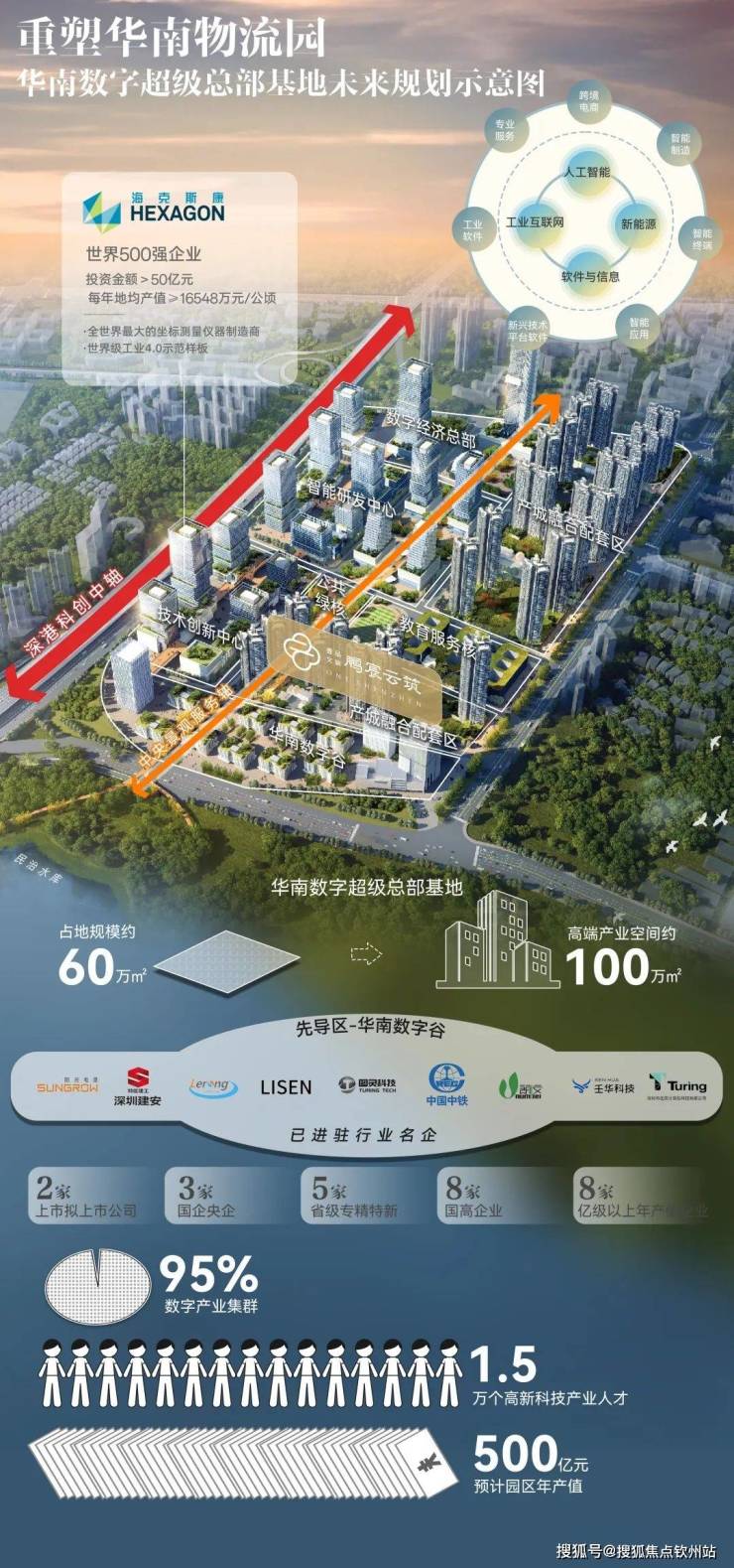 对标深超总、腾讯企鹅岛及香蜜湖国际金融中心,四大微城市之一,产学研商住定位,世界500强海克斯康已落户,已集聚35+龙头名企,打造湾区数智产业集群,数字产业集群度达95%,驱动板块加速蜕变。