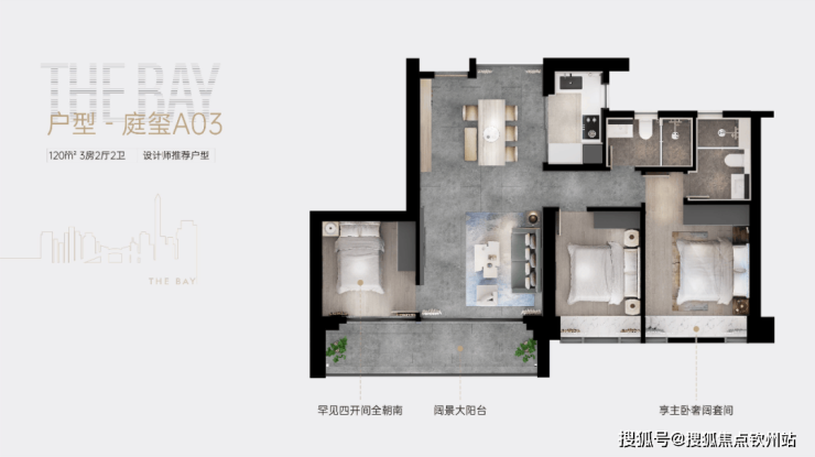 120-124㎡三房两厅两卫:部分户型享两开间宽景阳台,可俯瞰福田中心景观,客厅开间开阔,家庭互动空间充足,居住舒适度拉满。