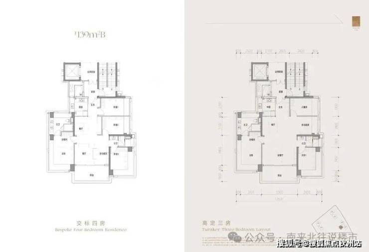 139㎡四房两厅两卫:位于3栋,提供A(竖厅南北通透)、B(双龙抱珠)两种格局。四开间朝南设计,主卧配备270°无柱转角飘窗。由SCD团队打造,提供“风尚米”和“经典灰”两种装修风格,可定制为高配版三房。