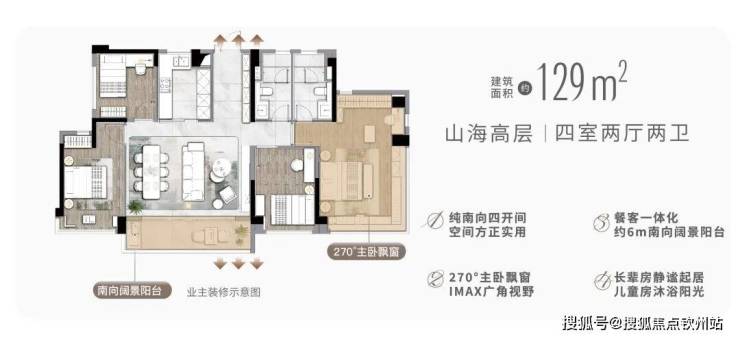 (2)129㎡的4室2厅2卫户型,参考总价为438.6万元,单价约为34031元/㎡。