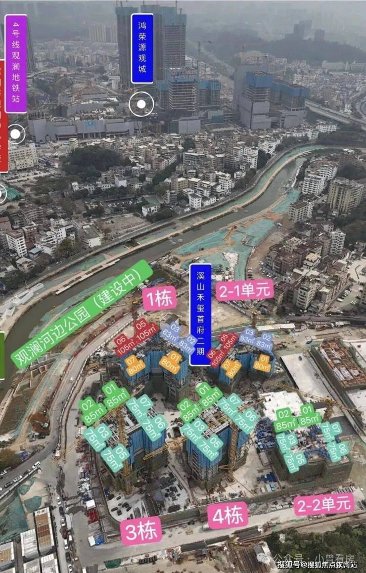△3-4栋东北朝向75㎡可以看观澜河,高楼层可以看远处的观澜湖度假区视野还不错,1栋01的80㎡也是可以看到,但是可能会被旁边得3栋遮挡一部分视野没有3-4栋好,但是户型比较不错南北通透