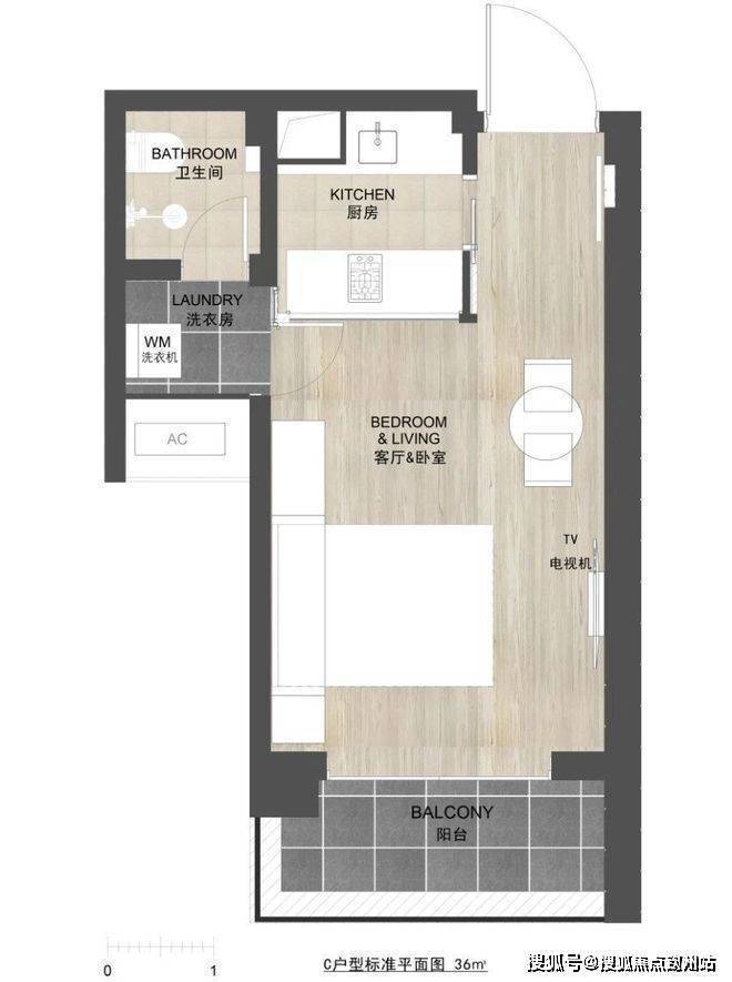 37㎡单房,西南及东北朝向,带阳台。