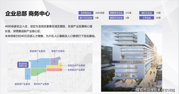 项目毗邻国家级高新园示范区--宝龙科技城,对标南山科技园具有干亿产业集群规划,汇聚企业 4000余家,国家级高新技术企业 210 家,超亿元企业 74 家,超十亿元企业5家,超百亿元企业2 家,上市企业 20家,虹吸百万高新技术人才。目前已有数百家知名企业入驻,其中包括比亚迪、中广核等知名企业和行业龙头企业。