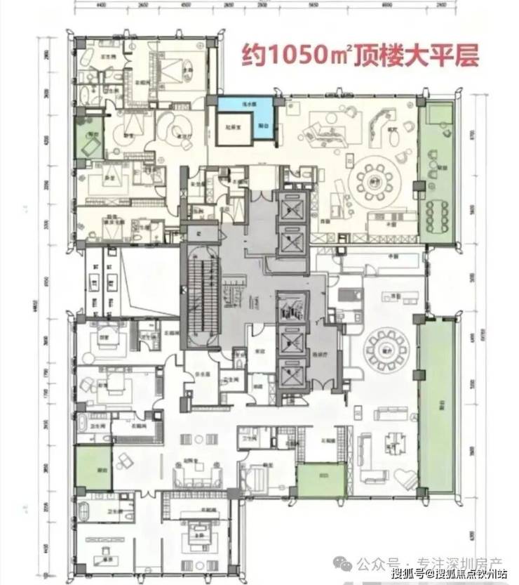 顶楼:Penthouse约1050㎡顶奢大平层。