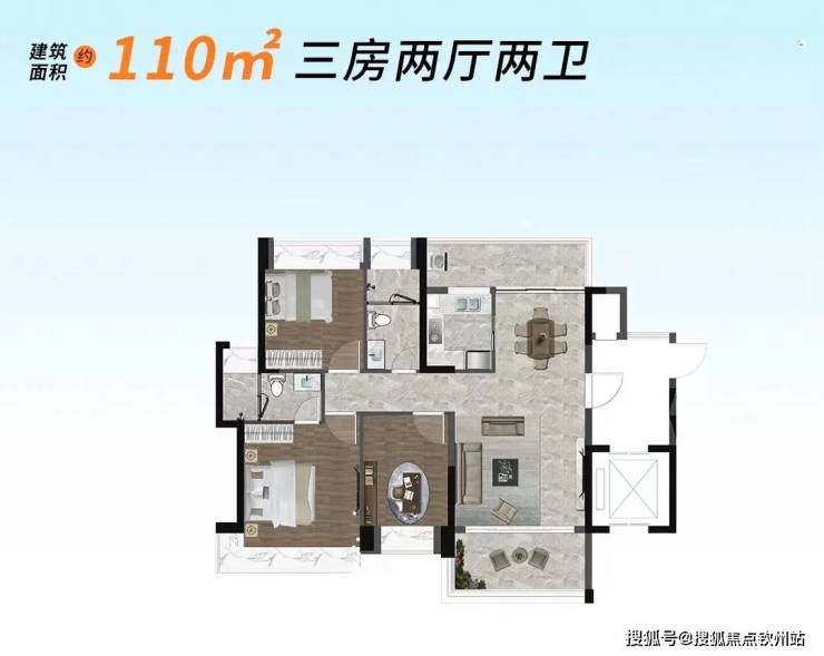 项目推出建面约85-120㎡精装二至三房,品质感拉满。