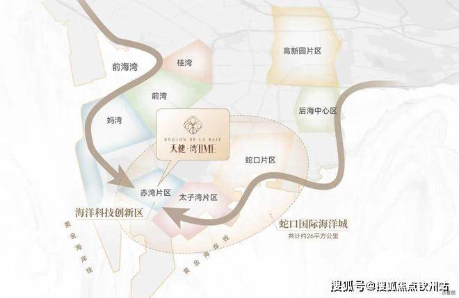 「天健湾时代府」位于南山赤湾片区,属蛇口招商街道,是南山区的西南海角,东临蛇口太子湾,西接前海自贸区。这个天然位置优势可以两头吃,是深圳未来两大高预期发展区域的桥梁。