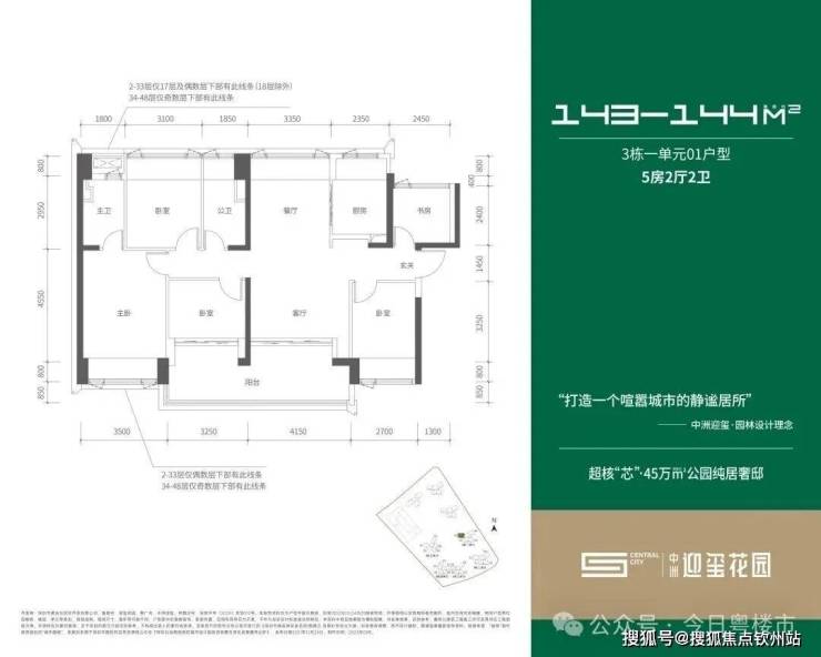 3栋1-2单元总高48层,3-5单元高31层,4栋为18班制幼儿园,5栋1-3单元总高48层。