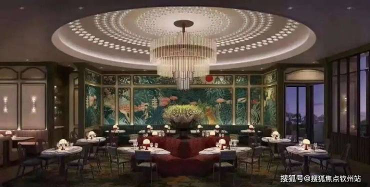 宴庭:34F (以粤菜为主,主厨曾工作过新荣记,丽苑以及其他米其林餐厅,餐厅带有户外露台用餐区域,大厅可容纳202位客人同时用餐 ,四个包房分别可容纳8-14位客人)