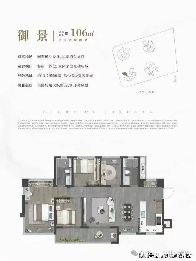 设计的是横厅南北通透格局,客餐厅开间5.6米,餐厨一体化,约13.7米超幕视野,超长阳台,主卧转角270°大飘窗,只有2栋07户型才有,得房率:78.99%(不含赠送),阳台主朝西南向。