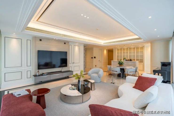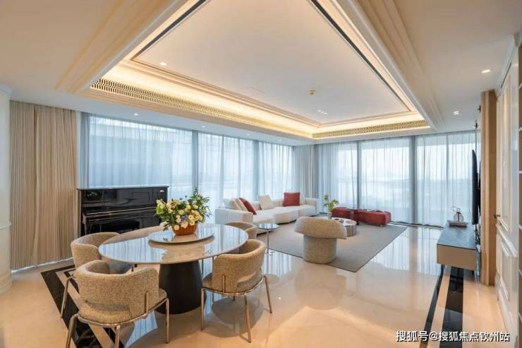 80平餐客厅,厅出50平大阳台,3.3米极限层高,透过270度无遮挡景观面,感一座城市的春夏秋冬